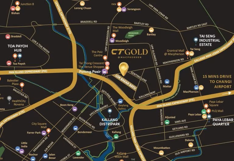 Strategically located in the MacPherson area, CT Gold @ Macpherson provides prime access to the Potong Pasir neighborhood. This hub is evolving into a tech-centric Business 1 enclave with modern logistics infrastructure. Connectivity is seamless via PIE and CTE expressways, with Potong Pasir MRT station just a short walking distance away, putting the CBD within 12 minutes.