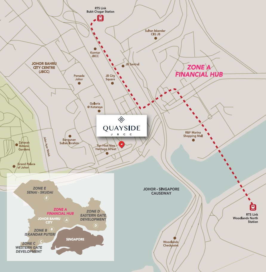 Quayside JBCC Location - Ideally Located within Johor Bahru's CBD & Financial District