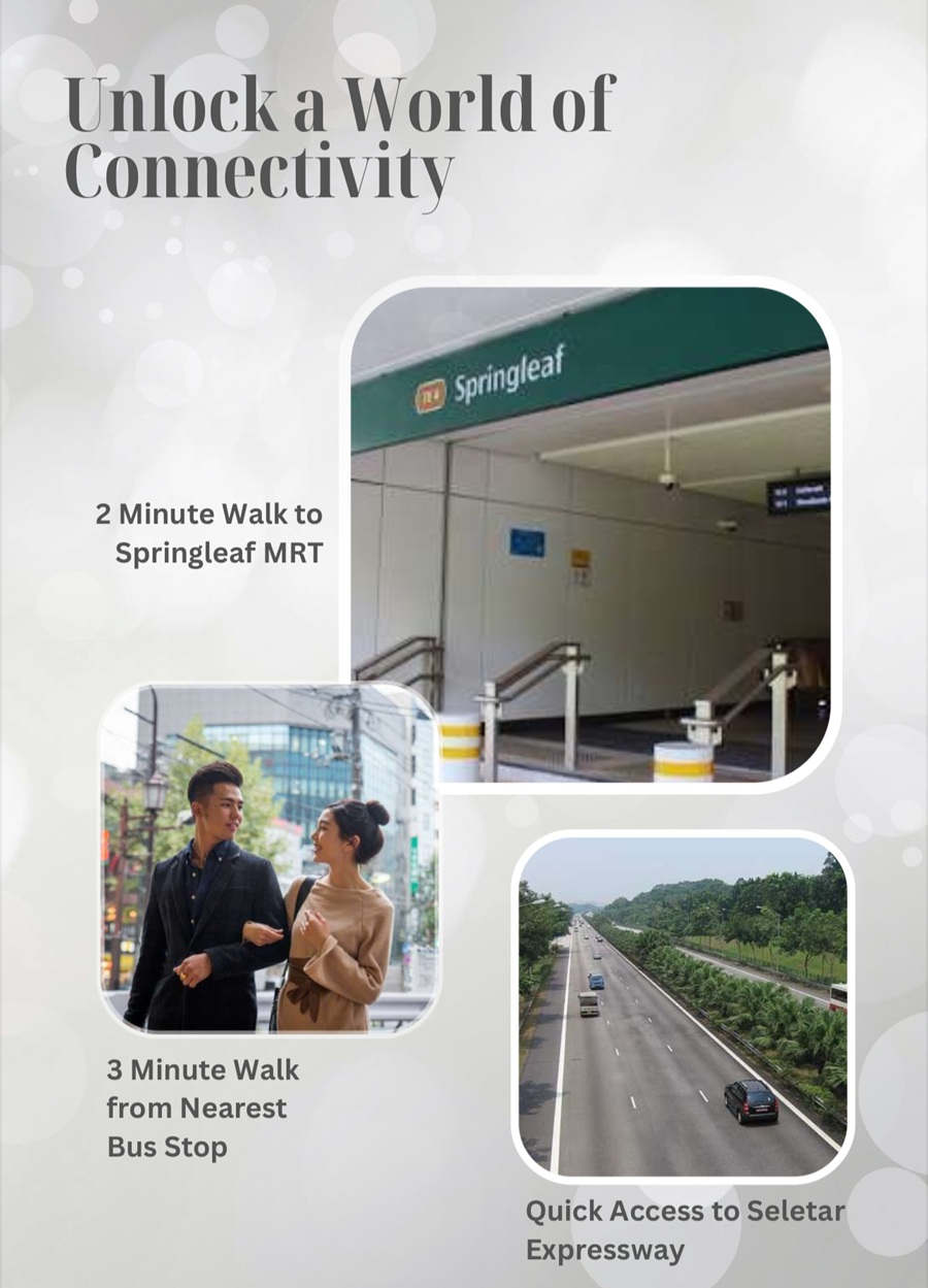 Strategically positioned just steps away from Springleaf MRT Station on the Thomson-East Coast Line (TEL), the Residents will enjoy seamless connectivity to key destinations like Orchard Road, Woodlands Regional Centre, and the upcoming Johor Bahru-Singapore RTS Link.