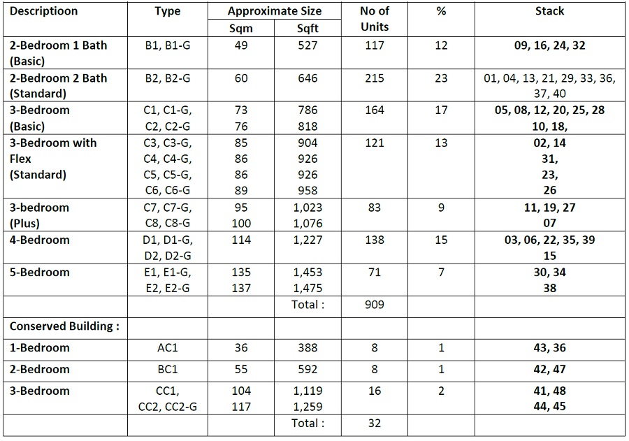 Number of Units : 941 residential units over 5 towers of 25-storeys and a 4-storey conservation block
